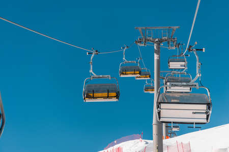 A beautiful shot of ski lifts and cable cars in Saalbach ski resort during winter time