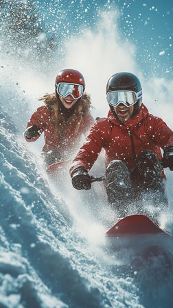 Winter Sports Enthusiasts Carve Through Powder Snow, Capturing the Exhilaration of Extreme Skiing