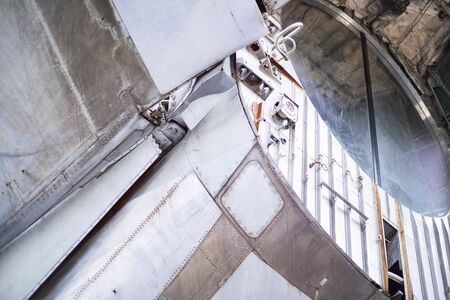 Interior of commercial airplane under heavy maintenance. Themes safety, control and aerospace industry.