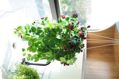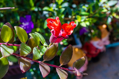 Red flowers and eskhinantus. Close up.