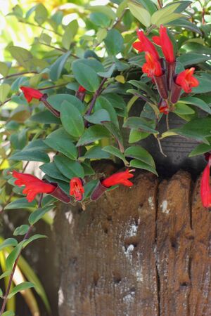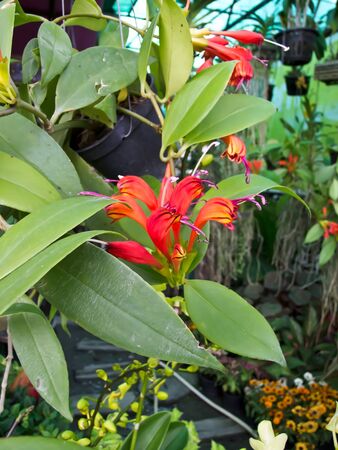 Flowering houseplant in the garden. Close-up.Aeschynanthus plant.