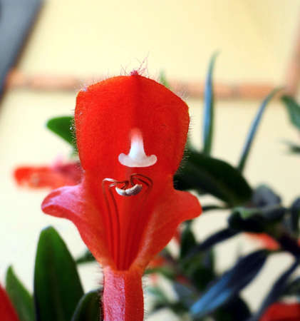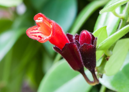 Close up of a red and yellow flower of Columnea, a rare tropical plant