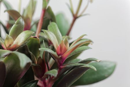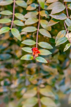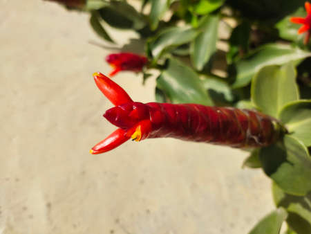 Close up of succulent plant with red flower and green leaves.Aeschynanthus plant.