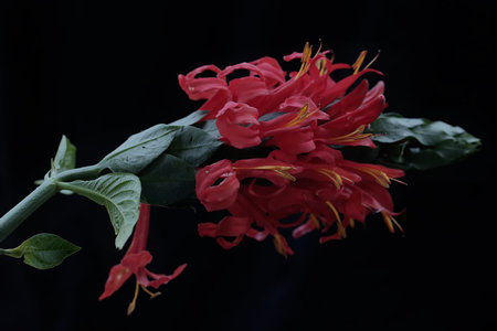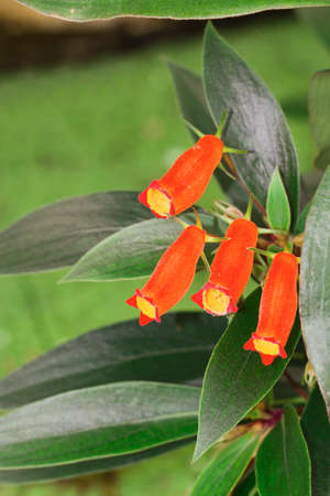 Closeup of beautiful lipstick vine, Aeschynanthus radicans flowers