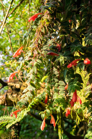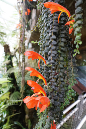 Zurich, Switzerland, July 21, 2024 Aeschynanthus or lipstick plant at the botanical garden