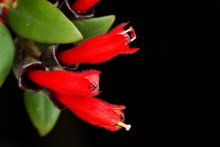 Red flowers on a black background, close-up, macro.