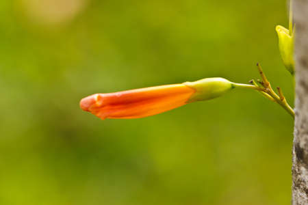 Close-up Fresh Orange trumpet, a beautiful Flame flower in the nature
