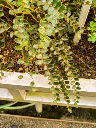 Saint Gallen, Switzerland, November 23, 2024 Pellaea Rotundifolia or button fern plant at the botanical garden