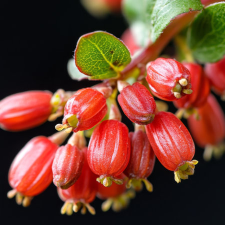 Vibrant Cluster of Shiny Red Barberry Berries on Branch, Close-up on Black Background