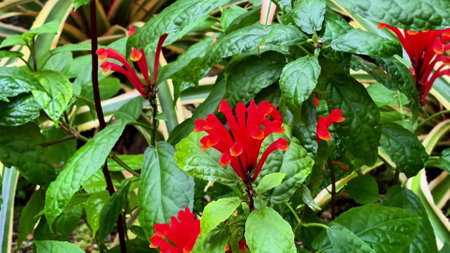 Mickey mouse plant in bloom with bright red petals and green pistils, used to beautify the garden