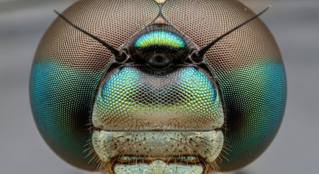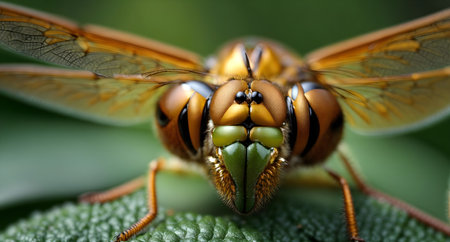 Detailed macro photo capturing the vibrant colors and intricate eye pattern of a dragonfly