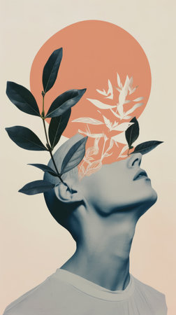 Minimalist collage blending geometric shapes with floral elements and audio waveform design