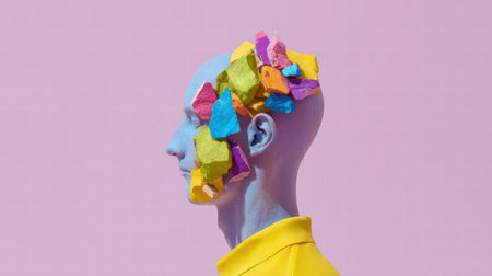 abstract modern visual symbolizing fragmented human personality.