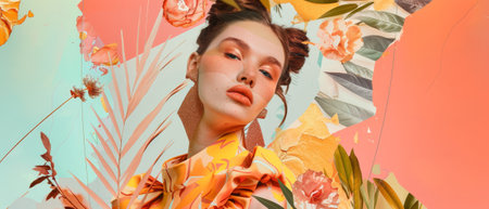 Contemporary art collage. Beautiful young. Copy space for text, ad. Flyer. Modern artwork.