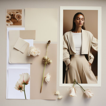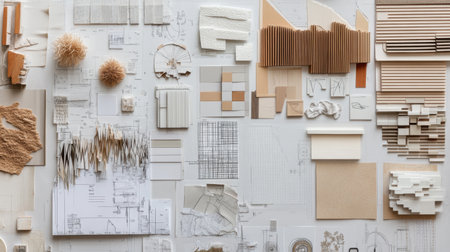 A captivating collection of architectural materials, sketches, and textures arranged in neutral tones, ideal for design inspiration in various creative projects.