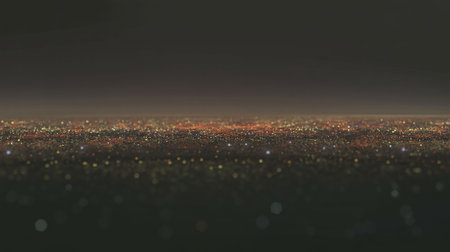 Golden Sparkling Dust Texture Background on an Abstract Black Digital Landscape with Bokeh Effects