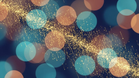 A dynamic visual of glimmering golden particles suspended in the air, creating an enchanting effect. Perfect for design, artistic projects, or festive themes.