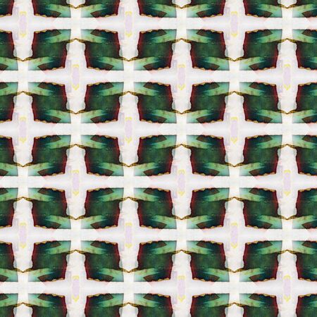 Seamless Tile Ethnic. Endless Ethnic Background. Abstract Rough Kaleidoscope. Pastel Colors Green and Yellow. Vintage Navajo Print. Watercolor Tile Ethnic.