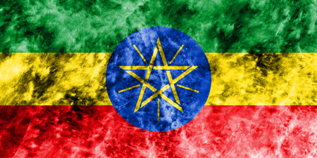 Flag of Federal Democratic Republic of Ethiopia on a textured background. Concept collage.