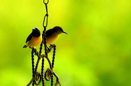 Purple rumped Sun bird sitting on a wire and resting
