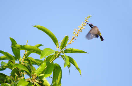 flying olive-backed sunbird