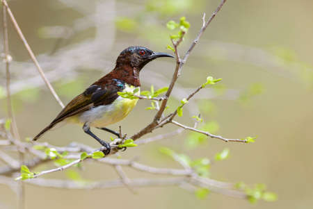 Olive-backed Sunbird or Yellow-bellied sunbird on branch in nature