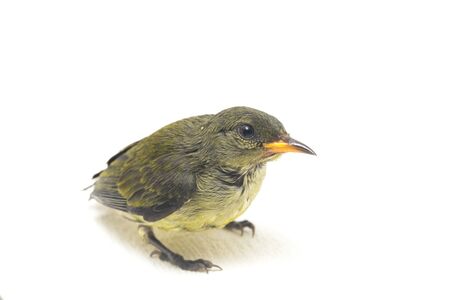 Bird (Olive-backed sunbird, Yellow-bellied sunbird) female yellow color perched on a tree in a nature wild