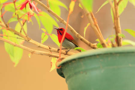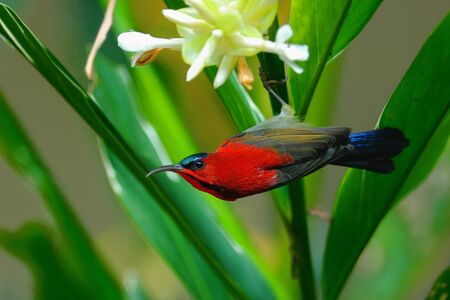 The crimson sunbird seek a food on the flower
