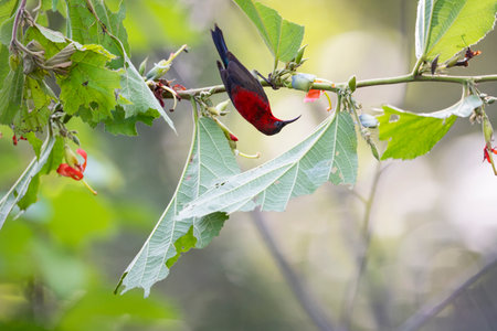 Crimson Sunbird on Banana Cabbage