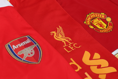 BANGKOK, THAILAND - JULY 24, 2016: background of new english premier league football jersey in Bangkok Thailand on July 24,2016 in Bangkok Thailand.