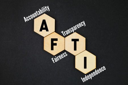 arrangement of wooden hexagons with the letters AFTI or the words accountability, fairness, transparency and independence. What are the 4 pillars of corporate governance explain