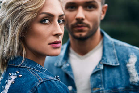 Close-up portrait of an attractive young people in love. Beauty, fashion. Optics style.
