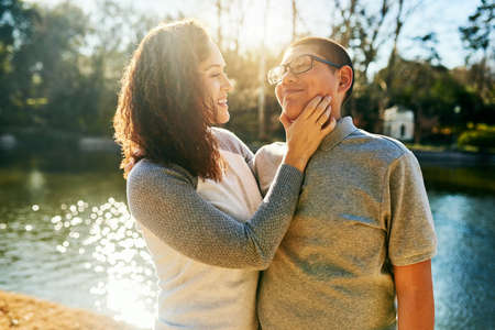 Staring into his loving eyes. Shot of an affectionate young couple spending time together outdoors.