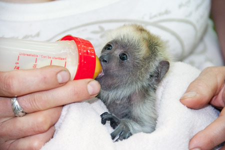 Mother of newborn monkey breastfeeding her kid