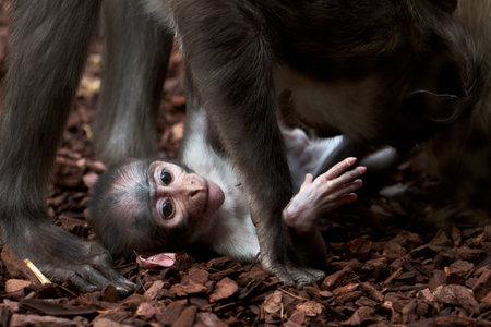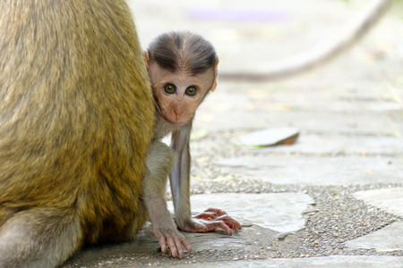 Baby macaque monkey with mother