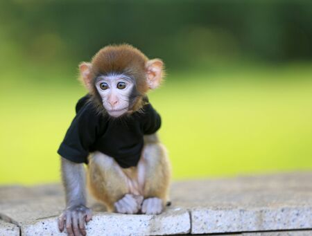 Cute baby monkey playing in the forest.