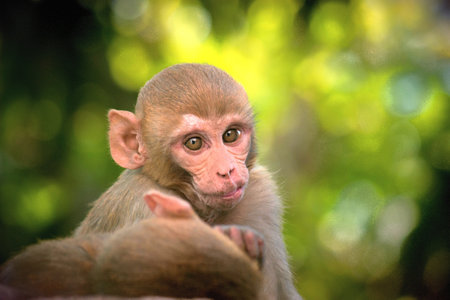 Picture of the Macaque Rhesus babiy wondering