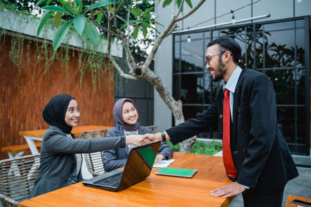 portrait of Two happy muslim businessman and women shaking hands at the office