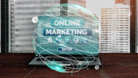Digital marketing concept on double exposure background.