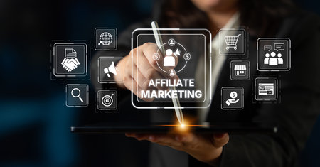 Affiliate marketing, Business and technology concept on virtual screen.