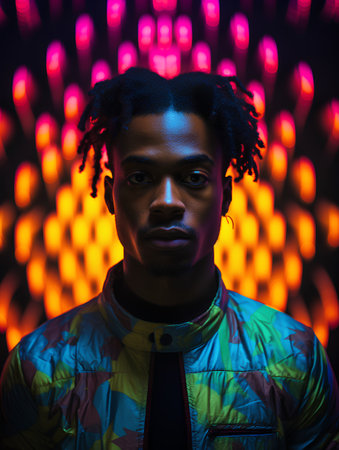 creative image of person with vibrant background simulates speed lines in multicolored tones, creating a sense of movement and urban energy