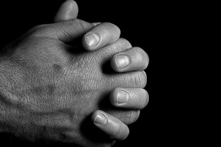 A man on a black background. Hands are folded in the position of prayer. Inner silence.