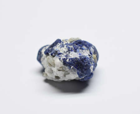 Macro mineral stone blue lapis lazuli (afghanistan) on white background close up