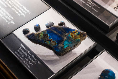 VIENNA, AUSTRIA - 3 SEPTEMBER 2018: Exposition of precious and semiprecious stones processed and not processed in the Museum of Natural History, Vienna.