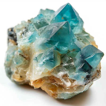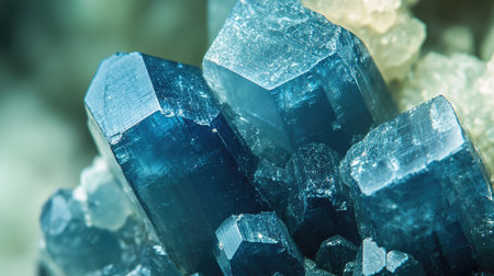 Aquamarine, a blue gem made of natural quartz found in geological crystals
