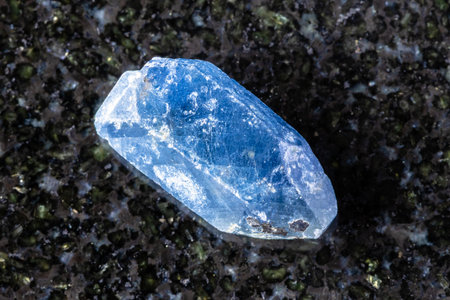 sample of rough euclase crystal on black granite background close up from Zimbabwe