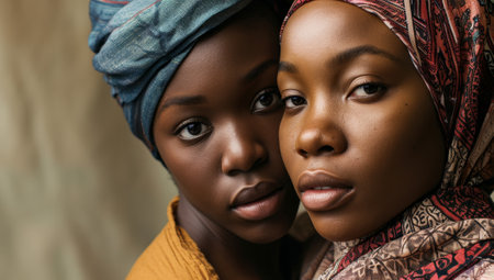 two african american women wearing headscarf looking at camera