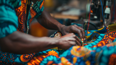 Close up of a hand of an African woman working on a loom
