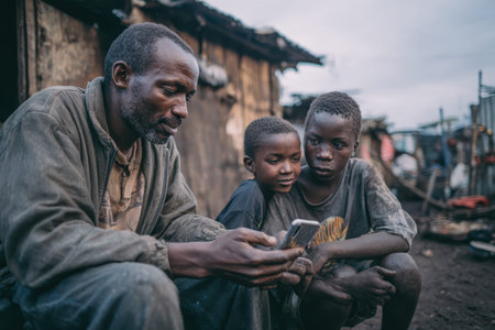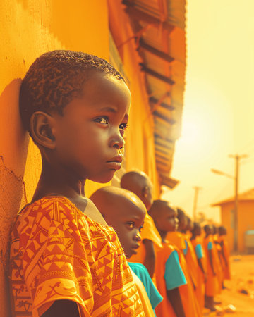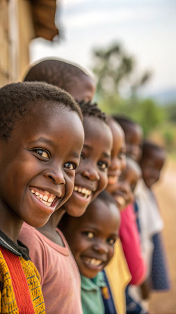 Joyful african children smiling in rural village setting.