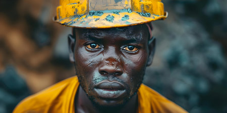 The Exploitation of Cheap Labor: A Portrait of an African Man Working in a Coal Mine Under Harsh Conditions. Concept Exploitation of Labor, African Workers, Coal Mining, Harsh Conditions